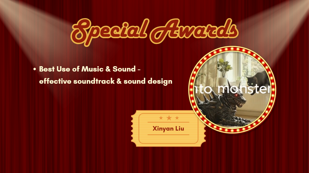 - 🎵 Best Use of Music & Sound Award: Xinyan Liu